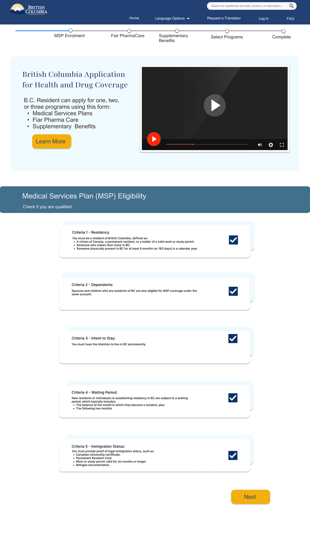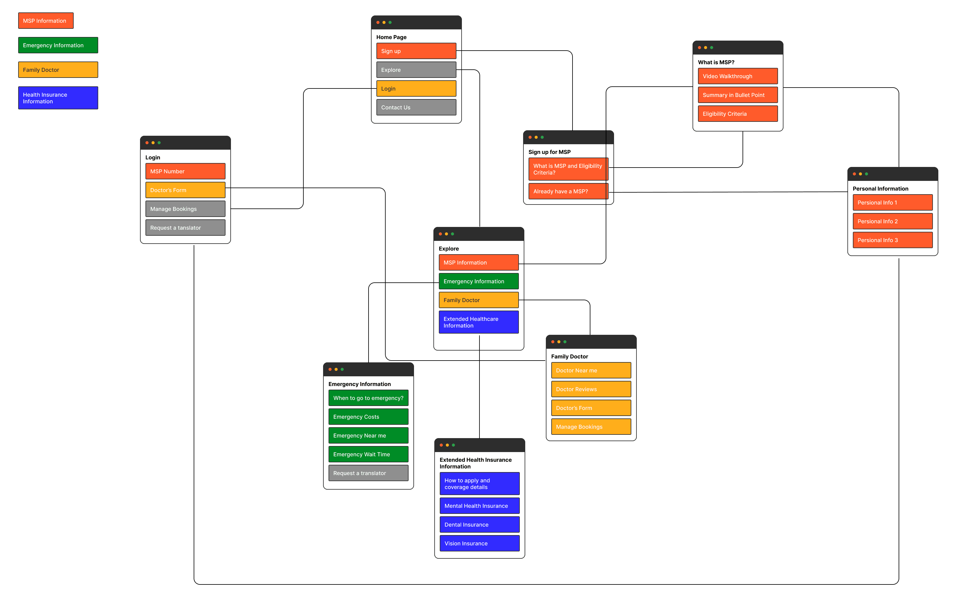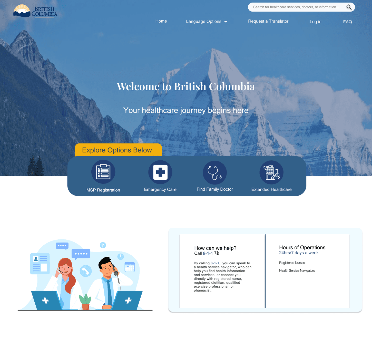 To address Dory’s need for a centralized platform, the redesigned dashboard provides clear entry points to critical services such as MSP registration, emergency care, and family doctor searches, reducing confusion and saving time.