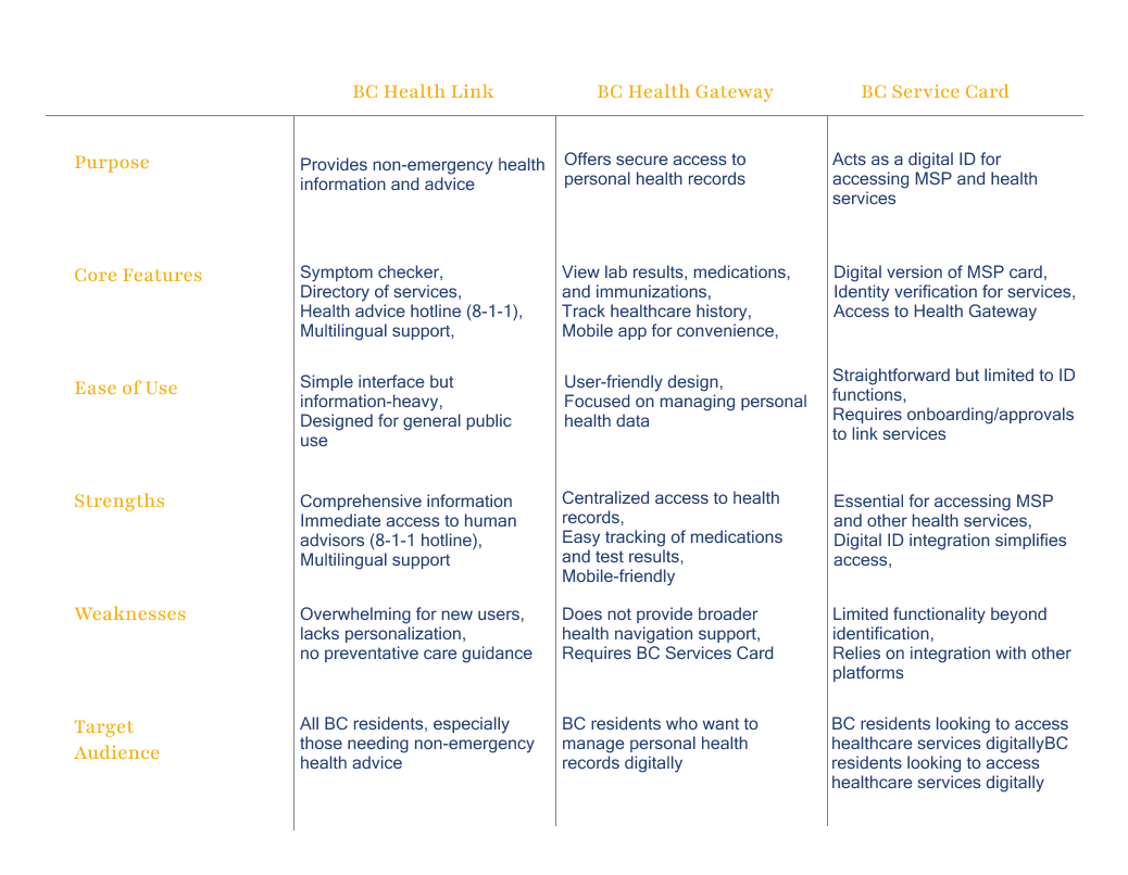 I compared the 3 existing platforms and found the current healthcare platforms in BC primarily cater to long-term redsidents who are already familiar with the Canadian healthcare system. Newcomers, however, face unique challenges.